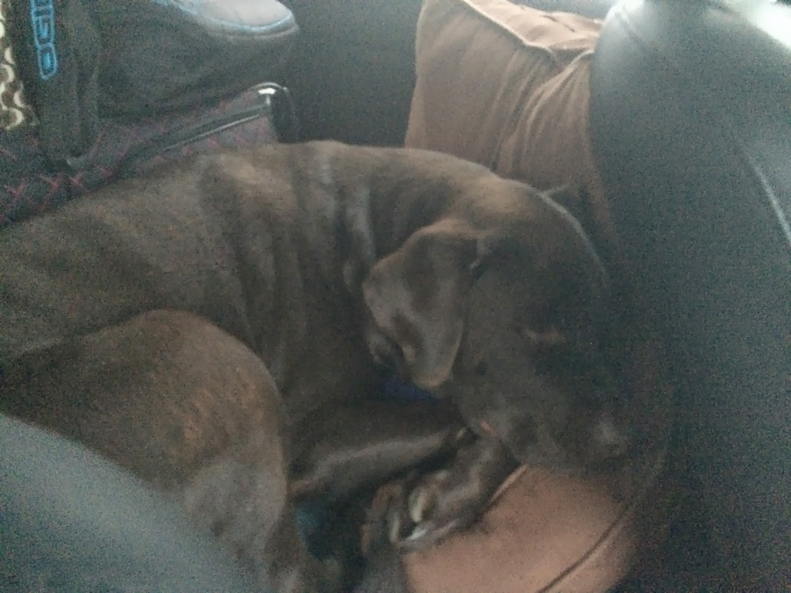 finally decided to lay & sleep on his pillow in the car instead of on the middle console!